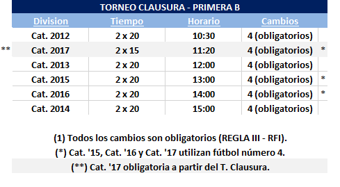 LA CATEGORÍA 2017 DEBERÁ SER PRESENTADA OBLIGATORIAMENTE DESDE EL TORNEO CLAUSURA.