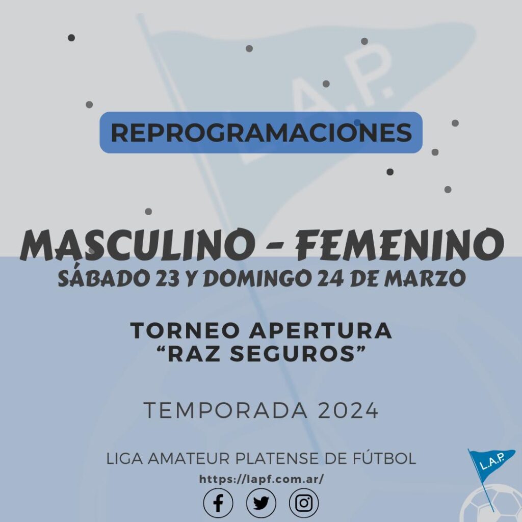 #ReProgramación CAMBIO DE DIA Y DESPROGRAMACIÓN #Masculino #Infantiles #Juveniles