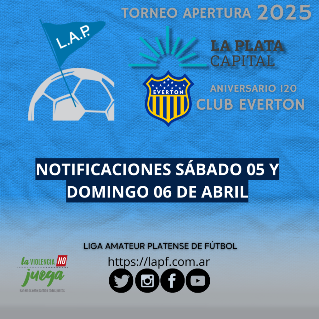 De común acuerdo entre los clubes EVERTON y LAS MALVINAS la jornada de INFANTILES correspondiente a la FECHA 5 de la PRIMERA A T.APERTURA se disputará el día DOMINGO 06/04 en los horarios previamente estipulados.