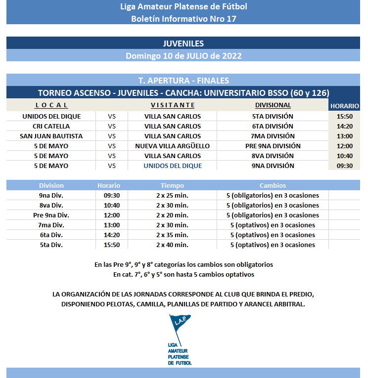 Así también, quedó estipulado el cruce del partido FINAL de #Juveniles:
