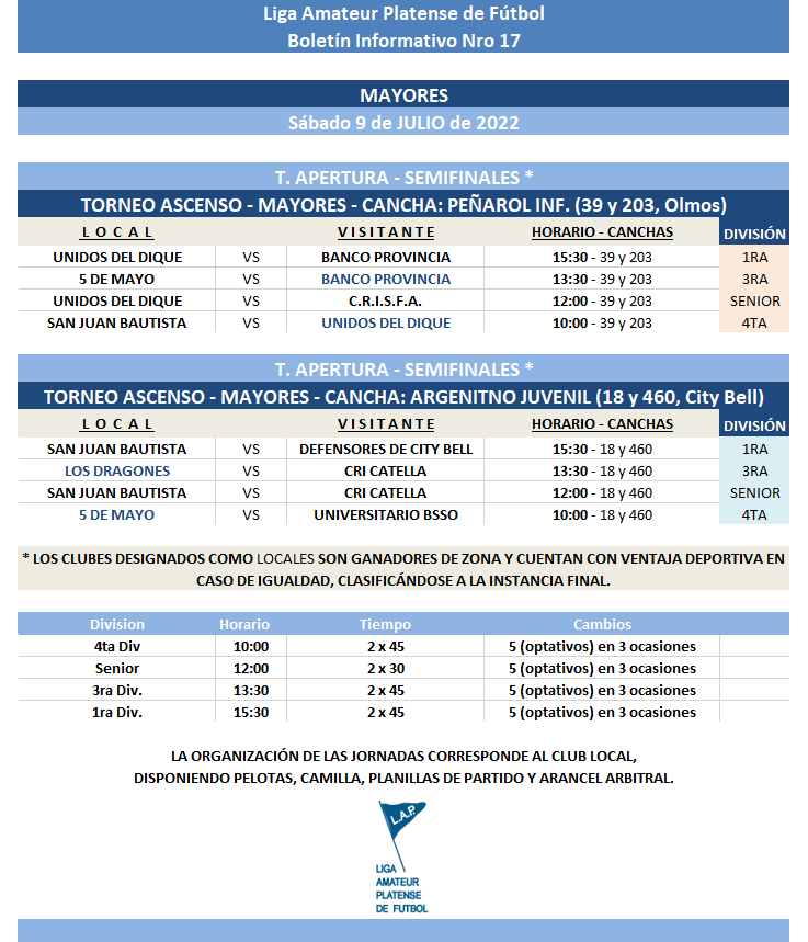 De acuerdo a los fallos emitidos por el Tribunal de Disciplina en Sesión Nro 12 / 2022, se rectifican los cruces correspondientes a los partidos de SEMIFINALES de #Mayores del T. Ascenso.