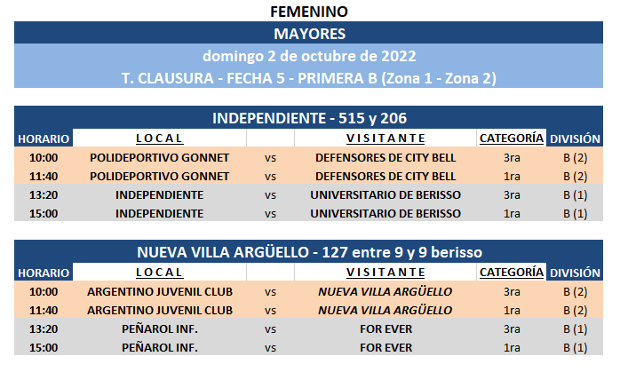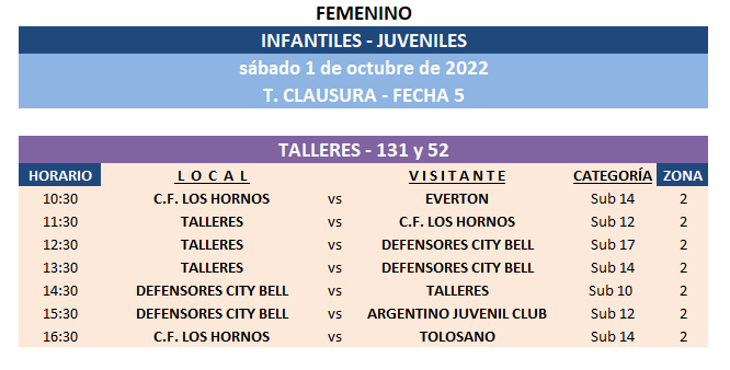 Atento a lo anunciado originalmente en la Programación Nro 21 de fútbol femenino, el Enlace Femenino notifica las modificaciones a los partidos de #Mayores a disputarse en canchas de Independiente de Abasto y Nueva Villa Argüello y de #Juveniles e #Infantiles a jugarse en cancha de Talleres FFPP, a saber: