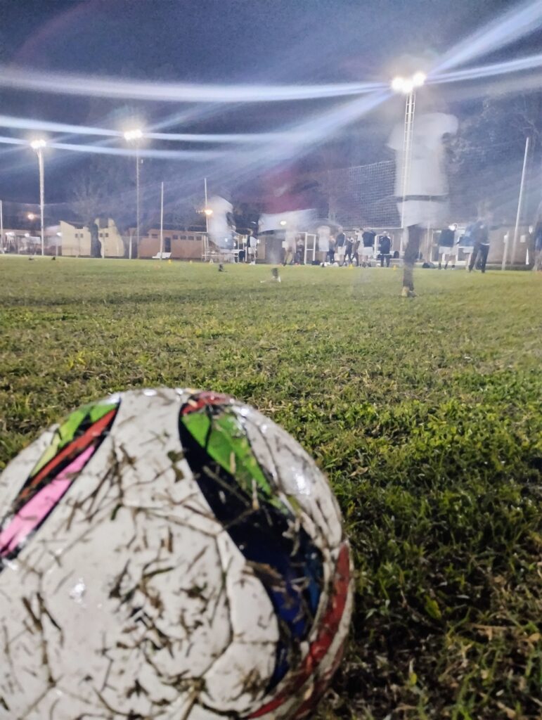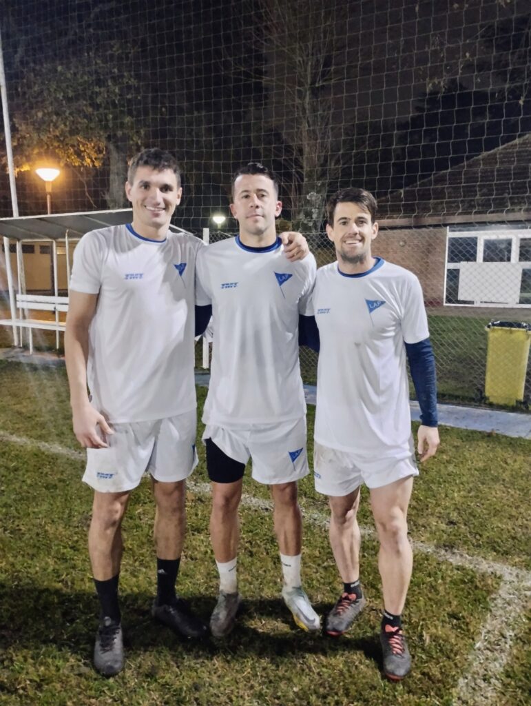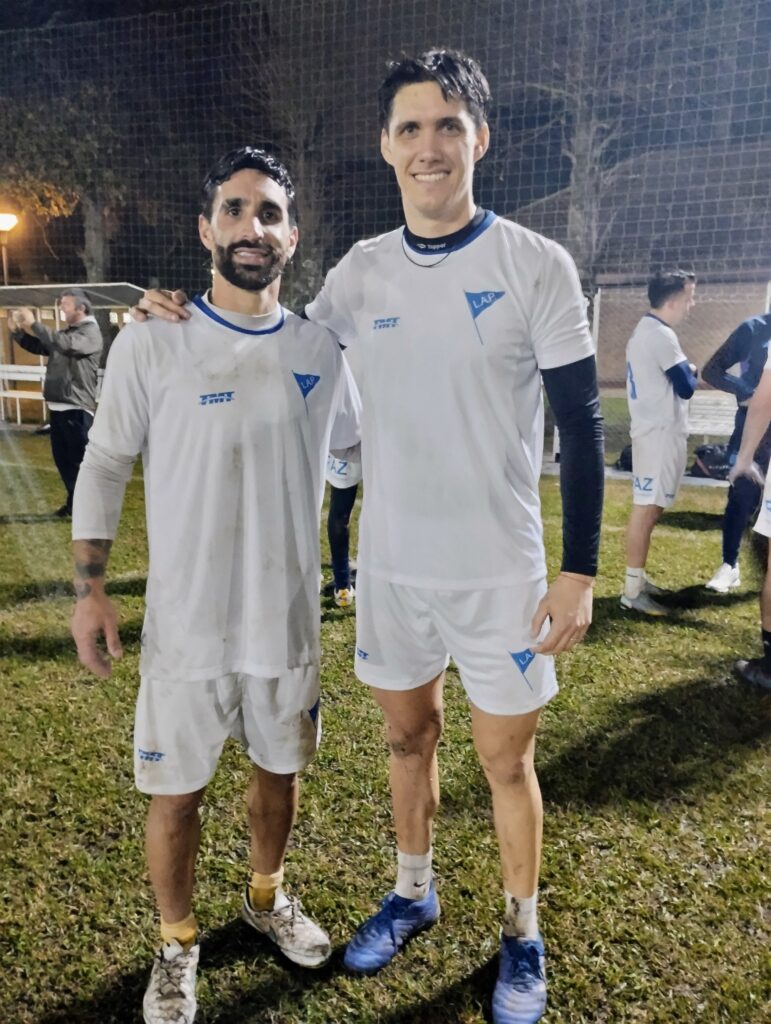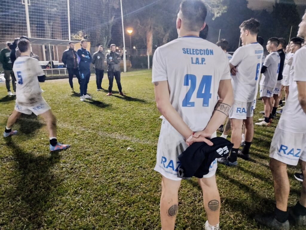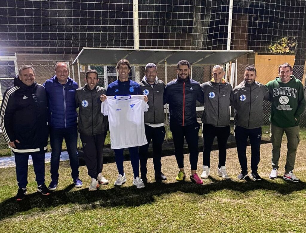 Terminado la práctica y los ejercicios de estiramiento, lo futbolistas recibieron la visita del profe Luis Martín, preparador físico de la Selección Argentina Campeón el Mundo y último capitán del Seleccionado Mayor Masculino de la Liga que obtuvo el título provincial en 1997.