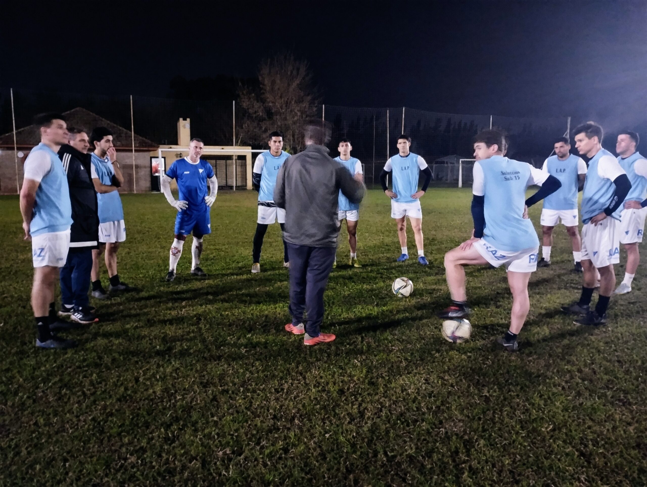 Terminado la práctica y los ejercicios de estiramiento, lo futbolistas recibieron la visita del profe Luis Martín, preparador físico de la Selección Argentina Campeón el Mundo y último capitán del Seleccionado Mayor Masculino de la Liga que obtuvo el título provincial en 1997.