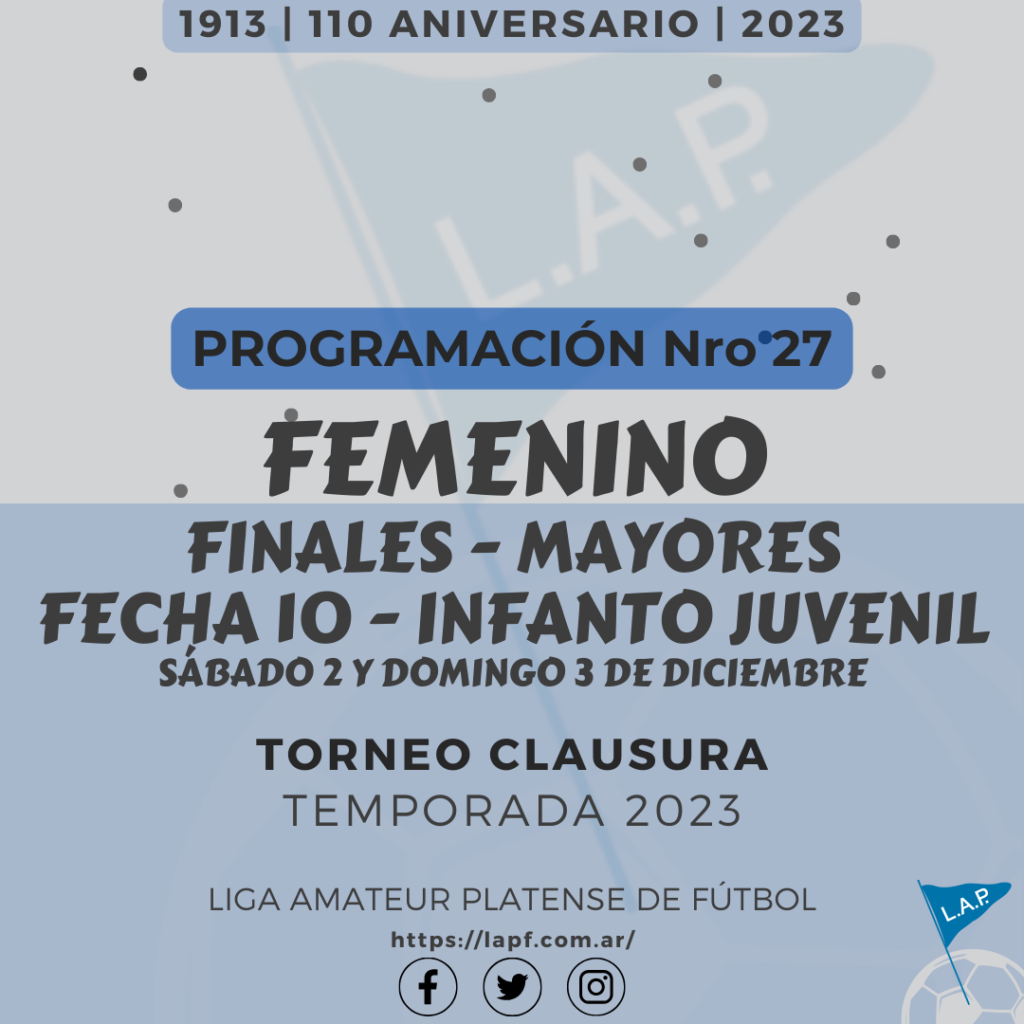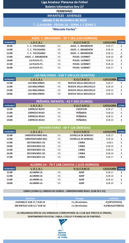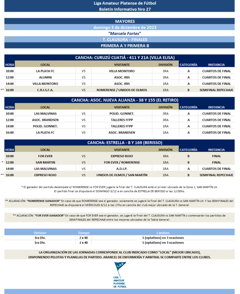 PROGRAMACIÓN NRO 27 – 2023: T. CLAUSURA “Marcelo Fortes”