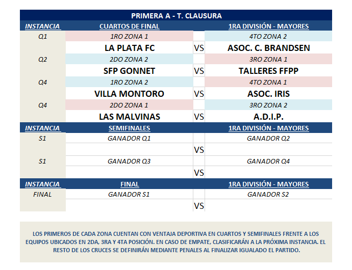 PRIMERA A – 1RA DIVISIÓN – CUADRO FINALES T. CLAUSURA