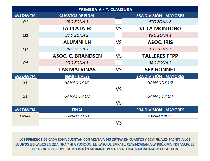 PRIMERA A – 3RA DIVISIÓN – CUADRO FINALES T. CLAUSURA