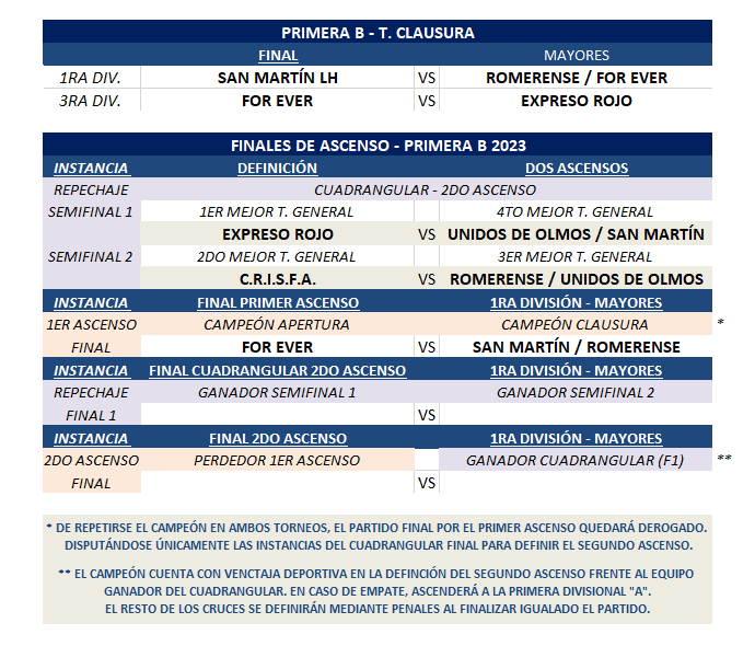 PRIMERA B – FINAL T. CLAUSURA Y DEFINICIÓN DE ASCENSOS