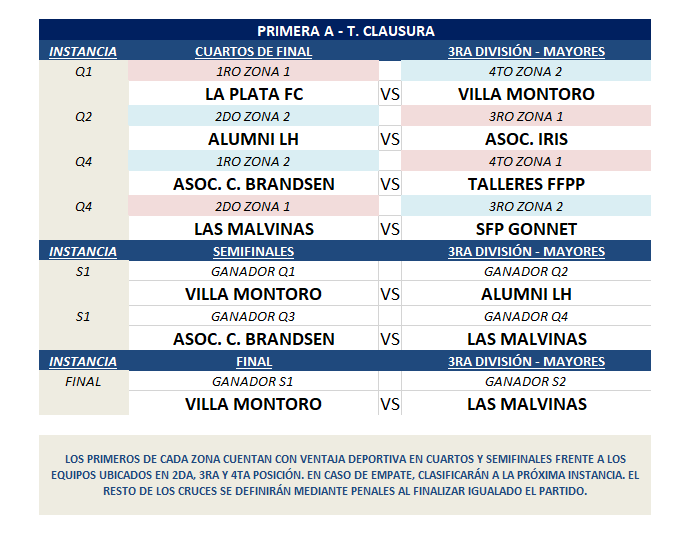 PRIMERA A – 3RA DIVISIÓN – CUADRO FINALES T. CLAUSURA
