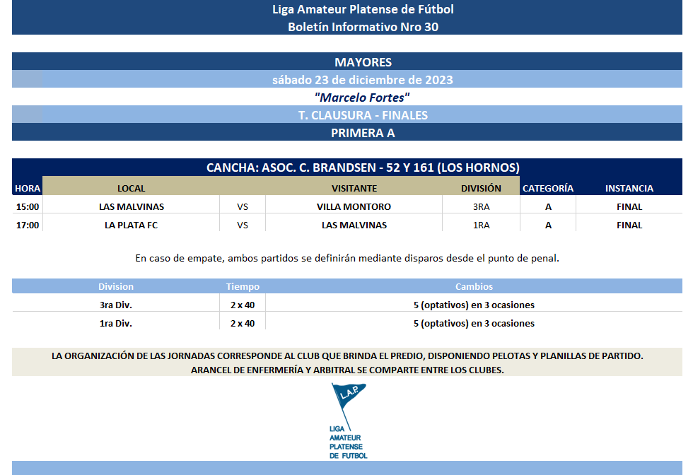 PROGRAMACIÓN NRO 30 – 2023: T. CLAUSURA “Marcelo Fortes”