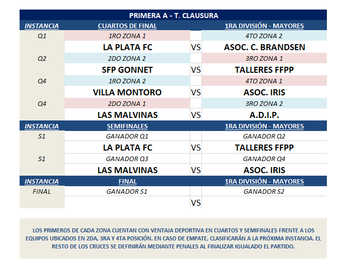 PRIMERA A – 1RA DIVISIÓN – CUADRO FINALES T. CLAUSURA
