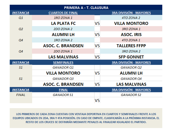 PRIMERA A – 3RA DIVISIÓN – CUADRO FINALES T. CLAUSURA