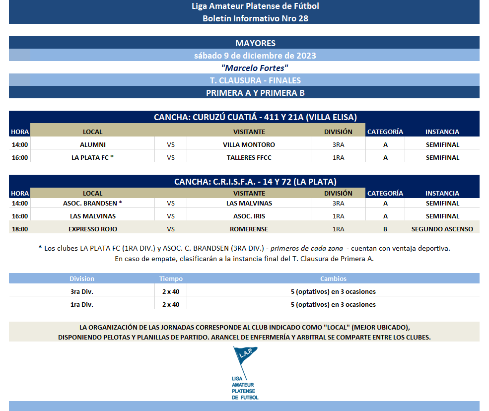 PROGRAMACIÓN NRO 28 – 2023: T. CLAUSURA “Marcelo Fortes”
