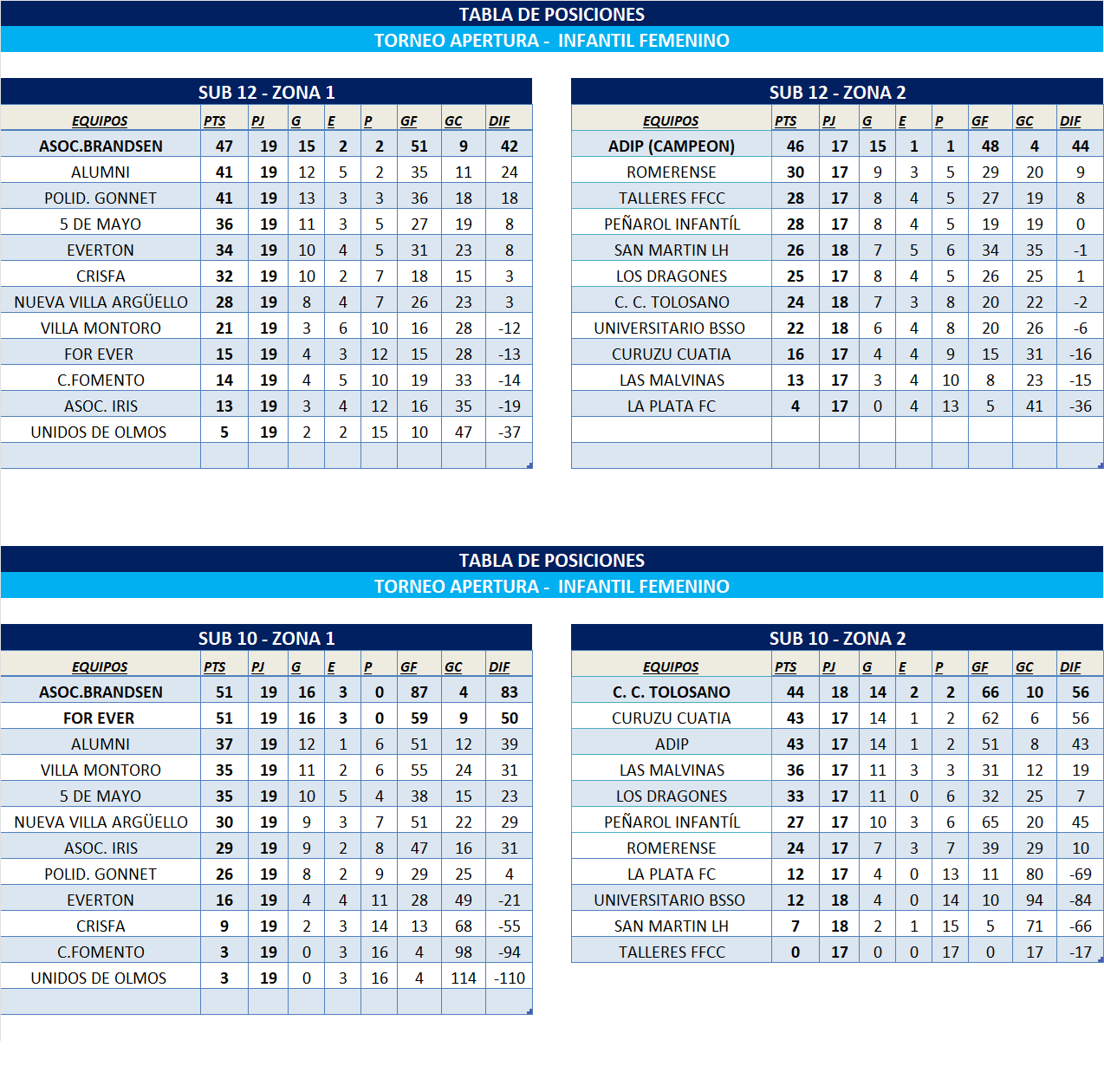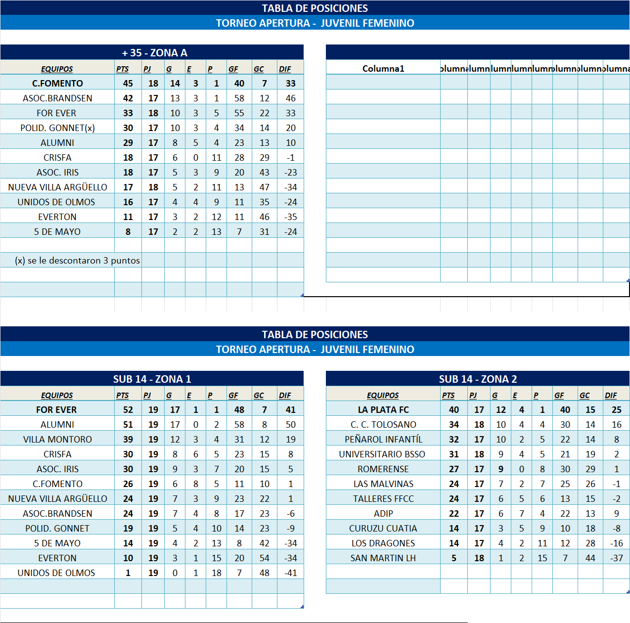 TABLAS INFANTOJUVENILES Y +35 ZONA 1 Y ZONA 2 14/2025 #Femenino