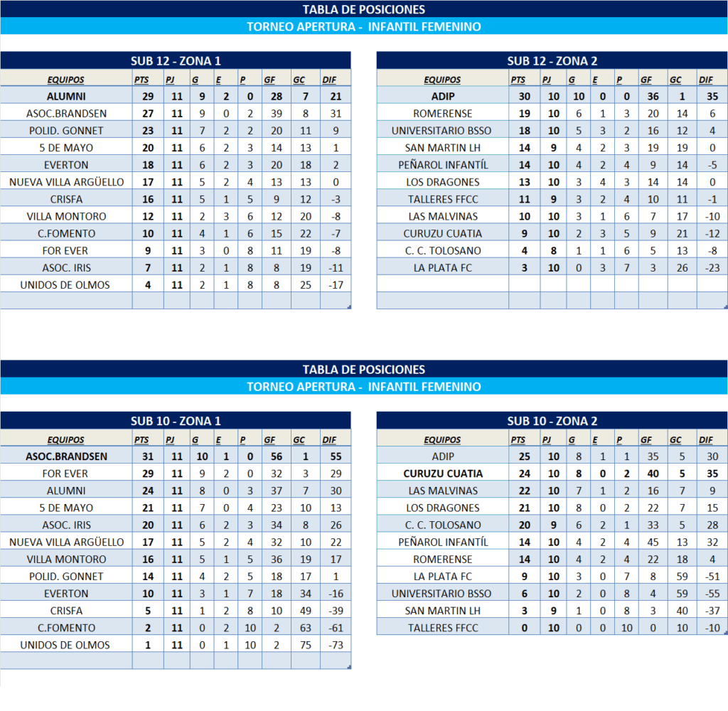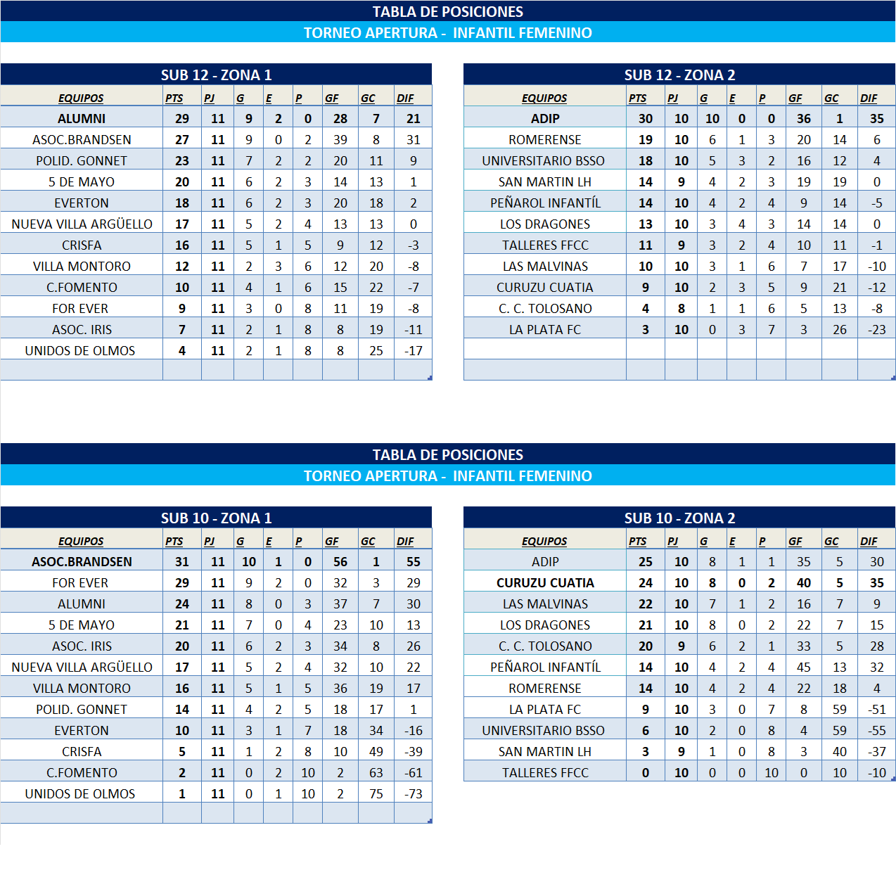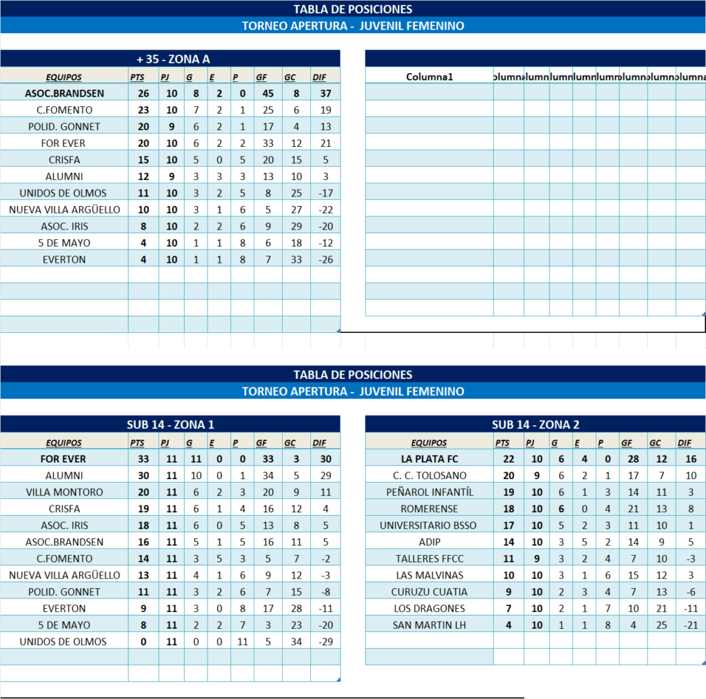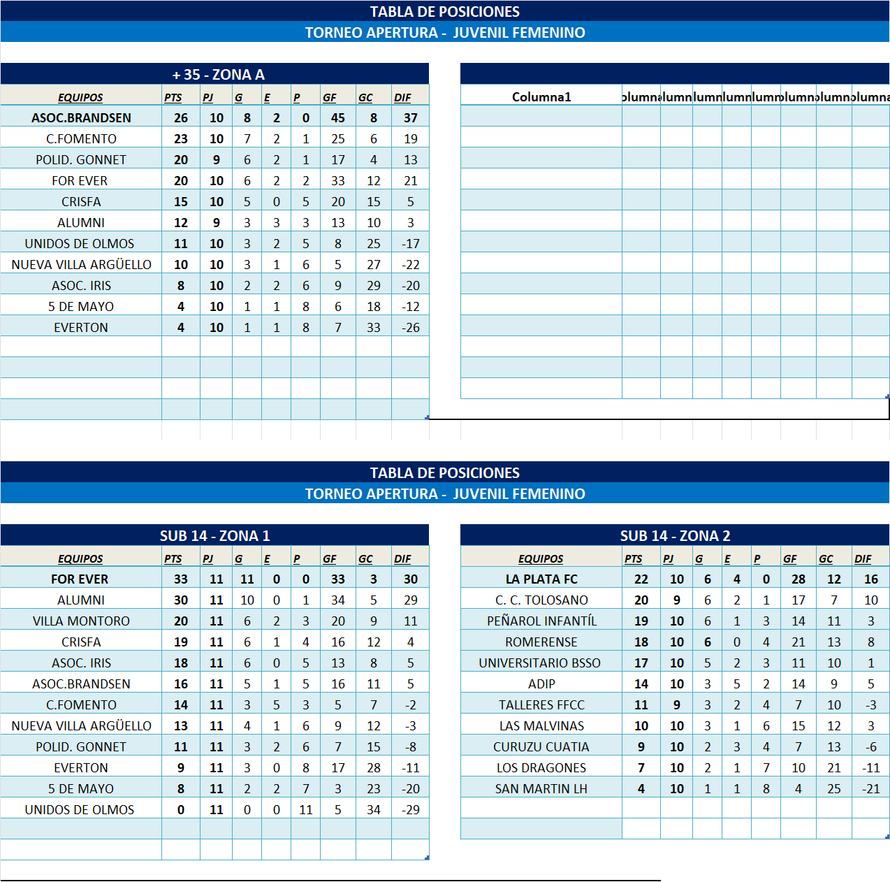 TABLAS INFANTOJUVENILES Y +35 ZONA 1 Y ZONA 2 8/2025 #Femenino