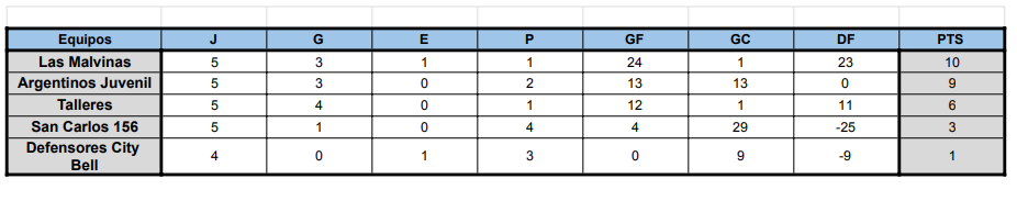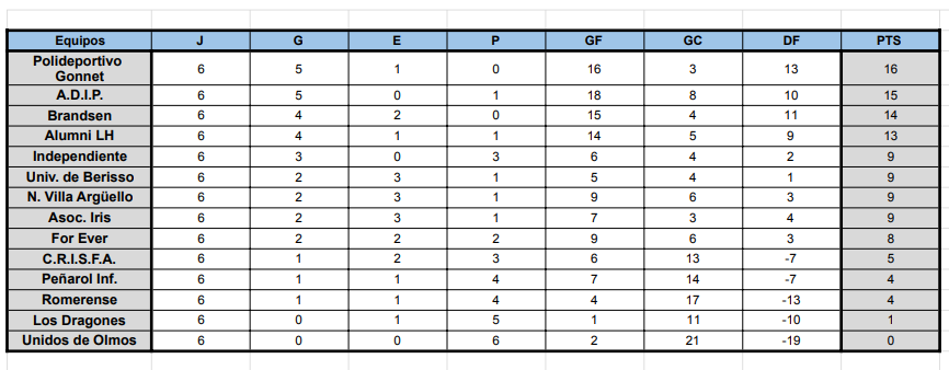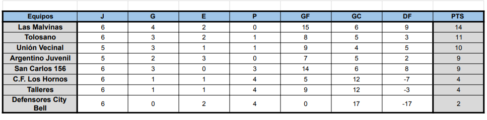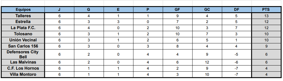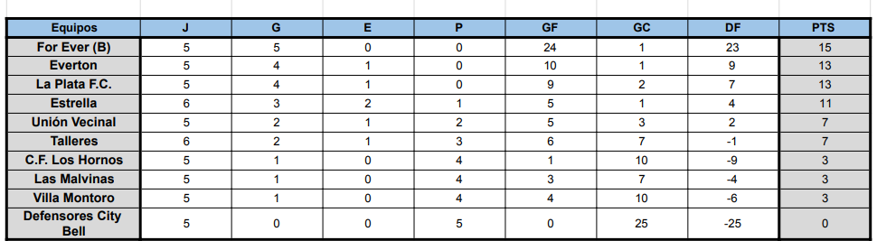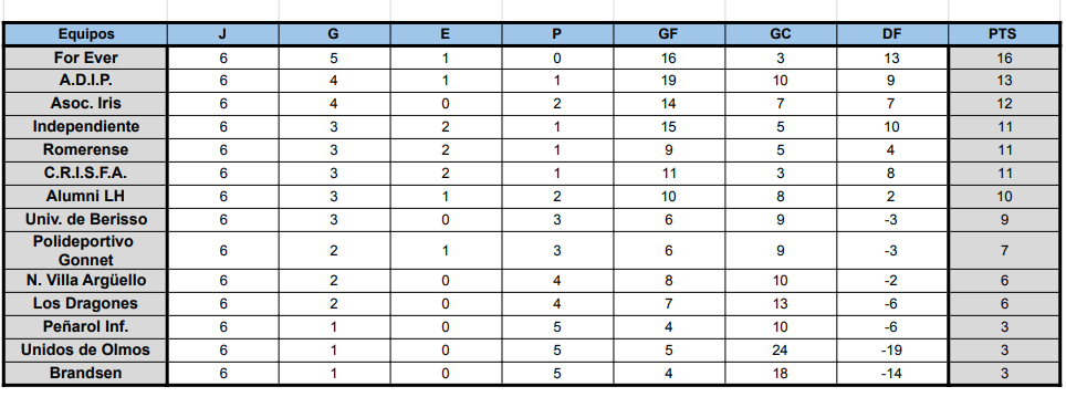 #Femenino TABLAS DE POSICIONES