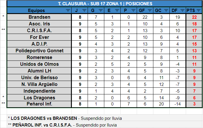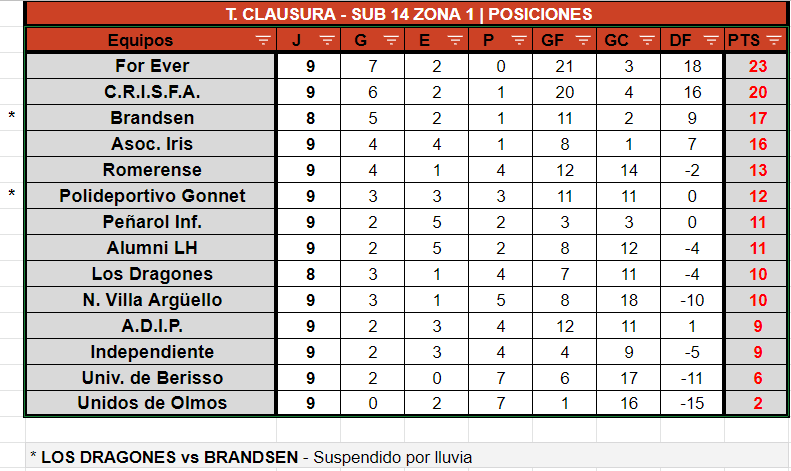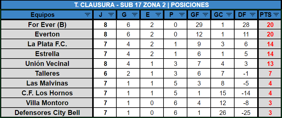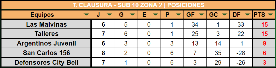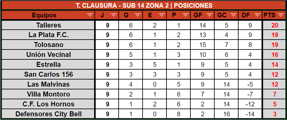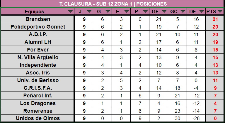 A través del Enlace Femenino, compartimos las tablas de posiciones de las categorías Juveniles Sub17 y Sub14 e Infantiles Sub12 y Sub10 Zona 1 y Zona 2 válidas por 8VA FECHA del Torneo Clausura 2022: